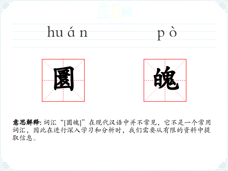 词汇“[圜魄]”在现代汉语中并不常见,它不是一个常用词汇,因此在进行深入学*和分析时,我们需要从有限的资料中提取信息。