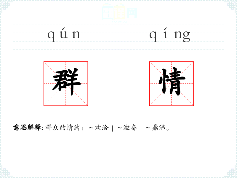 群众的情绪:~欢洽|~激奋|~鼎沸。