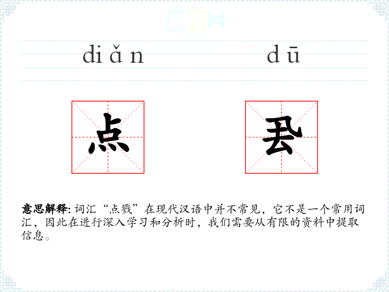 词汇“点戮”在现代汉语中并不常见,它不是一个常用词汇,因此在进行深入学习和分析时,我们需要从有限的资料中提取信息。
