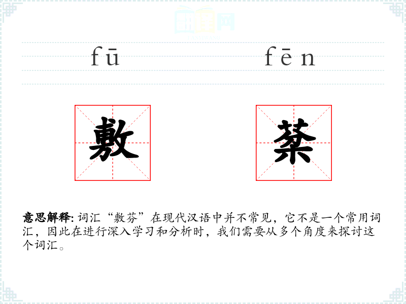 “敷芬”作为一个不常见的词汇,其学和分析更多地是对古代文化和语言的一种探索。在现代语言学和表达中,这个词汇的重要性不大,但它可以帮助我们更好地理解古代汉语和文化。