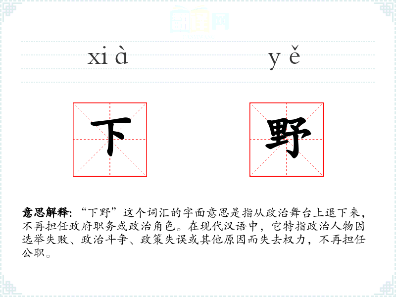 在文化中,“下野”常常与政治斗争、权力更迭紧密相关,反映了社会对政治变迁的关注和评价。它也体现了人对权力和政治的复杂情感,既有对权力斗争的批判,也有对政治人物命运的同情。