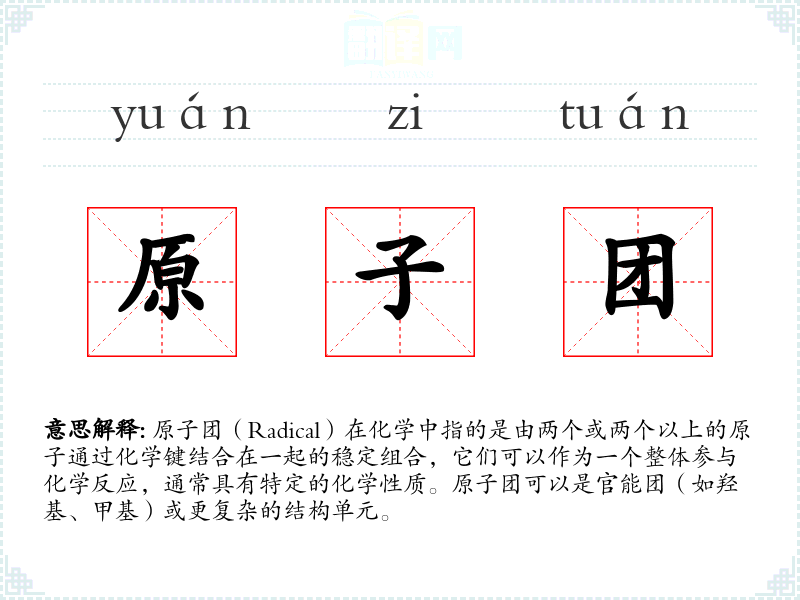 “原子团”一词源自拉丁语“radix”(根),在化学中,它指的是分子中的“根”或基本单元。随着化学的发展,这个词逐渐被用来描述那些在化学反应中保持稳定并能传递特定化学性质的结构单元。