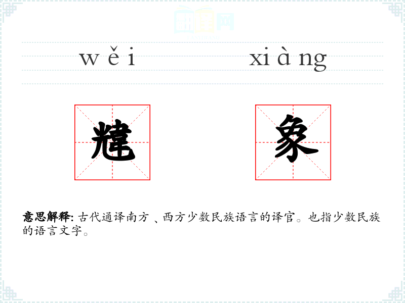 古代通译南方﹑西方少数民族语言的译官。也指少数民族的语言文字。
