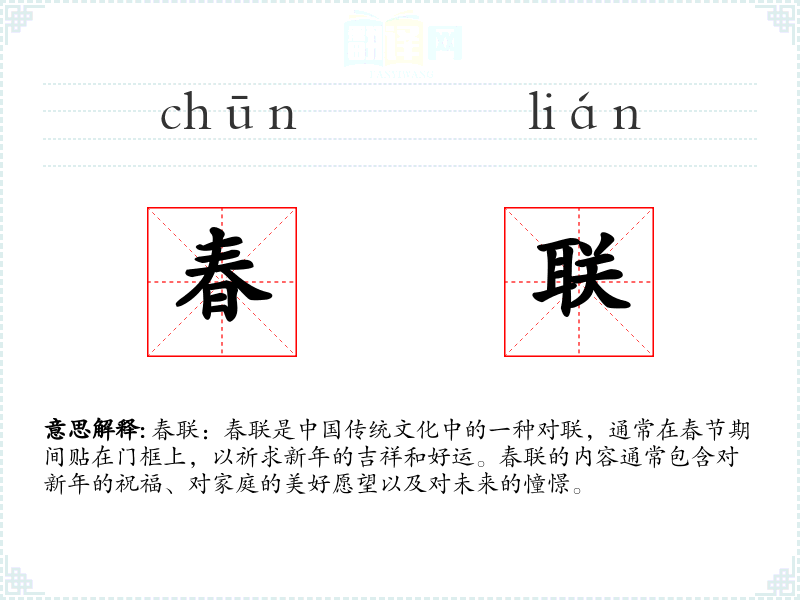 "春联"的意思解释、春联是什么意思由翻译网汉语词典查词提供。