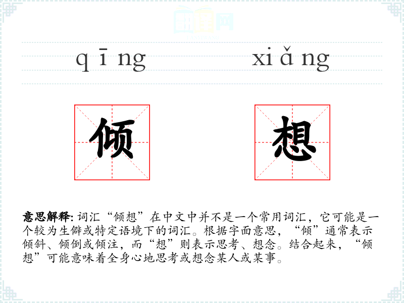 在特定的文化或社会背景下,“倾想”可能被用来表达对传统、历史或文化的深切思考和尊重。