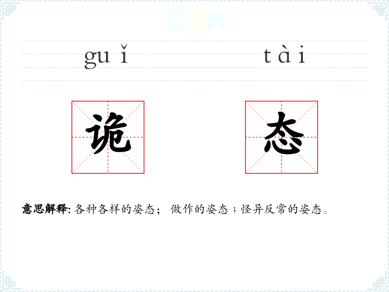 的姿态; 做作的姿态﹔怪异反常的姿态。