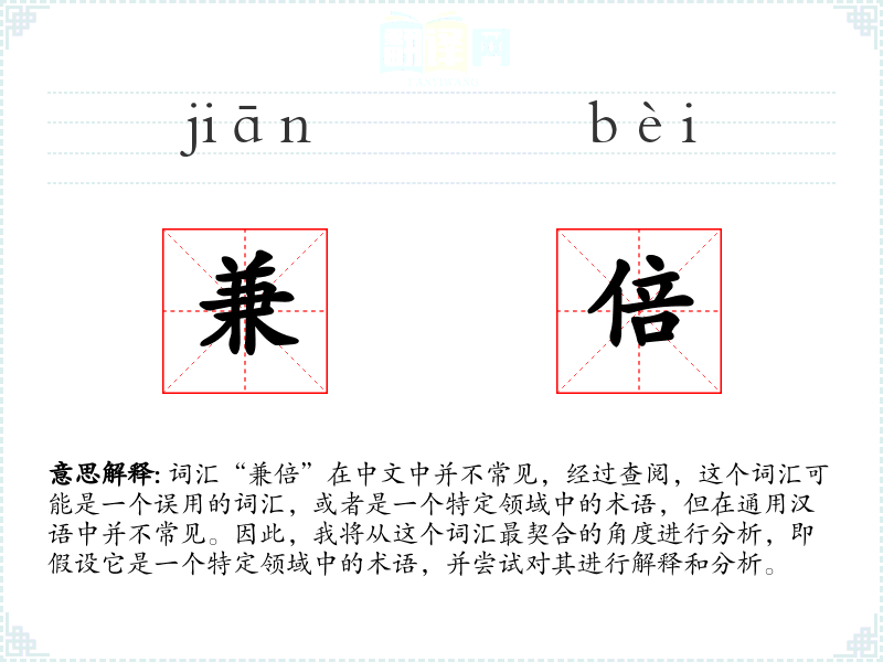 由于“兼倍”不是一个通用词汇,个人应用不详。