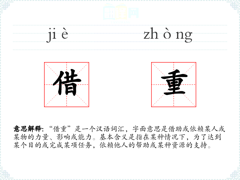 - 专业领域:在商业或学术领域,“借重”可能指依赖某人的专业技能或资源,例如:“公司在新项目中借重了资深顾问的建议。”