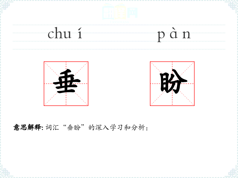 - 文学:在文学作品中,“垂盼”常用来描绘人物的心理活动,增强情感的表达。