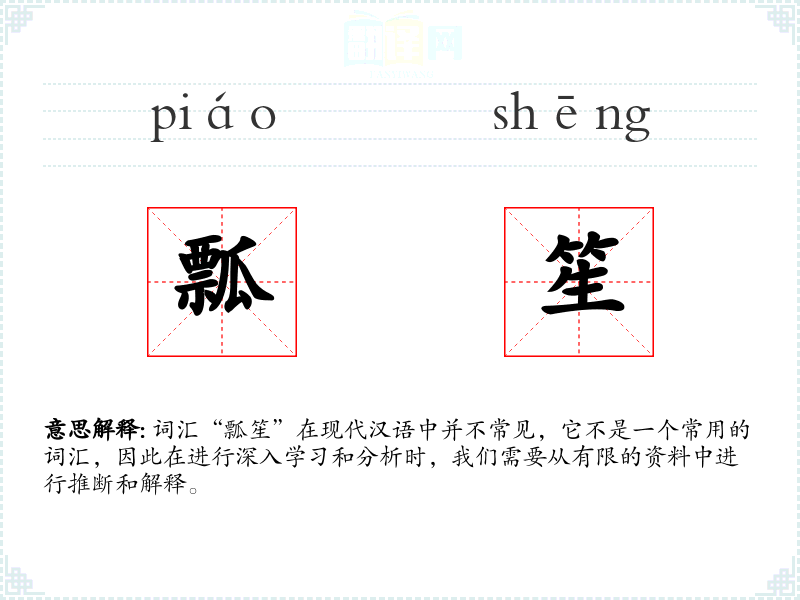 词汇“瓢笙”在现代汉语中并不常见,它不是一个常用的词汇,因此在进行深入学*和分析时,我们需要从有限的资料中进行推断和解释。