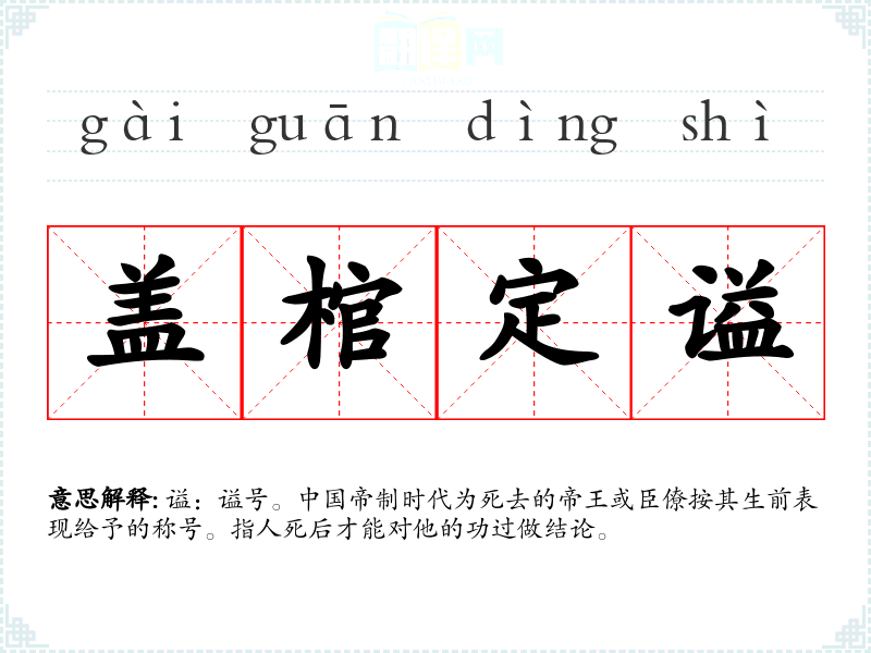 谥:谥号。中国帝制时代为死去的帝王或臣僚按其生前表现给予的称号。指人死后才能对他的功过做结论。