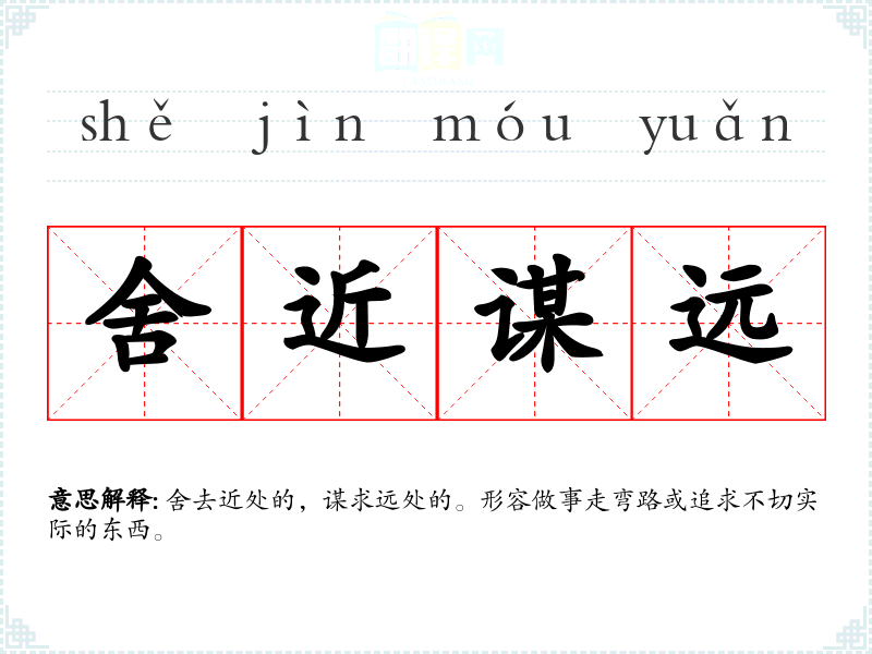 舍去近处的,谋求远处的。形容做事走弯路或追求
