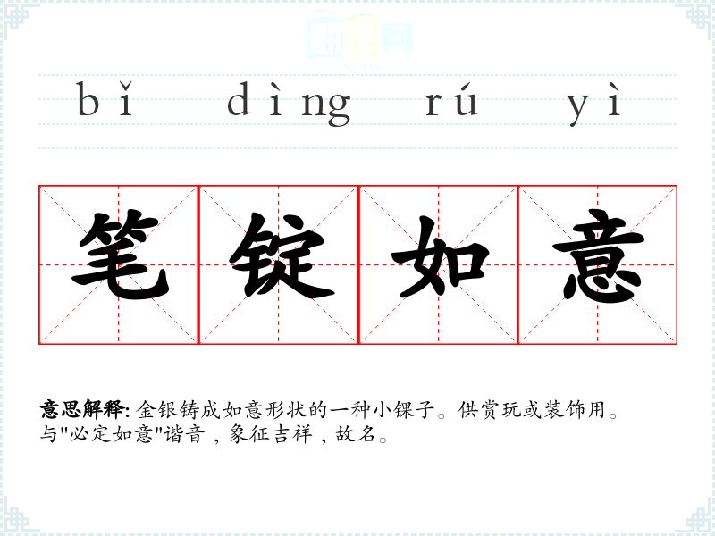 金银铸成如意形状的一种小锞子。供赏玩或装饰用。与"必定如意"谐音﹐象征吉祥﹐故名。