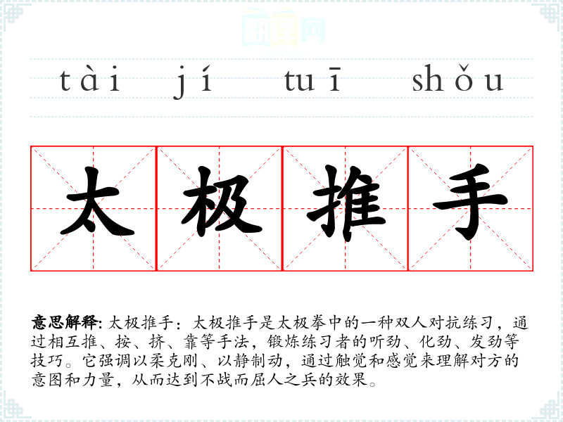 "太极推手"的意思解释、太极推手是什么意思由翻译网汉语词典查词提供。