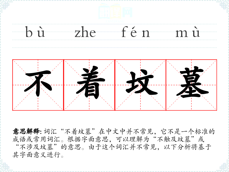 词汇“不着坟墓”在中文中并不常见,它不是一个标准的成语或常用词汇。根据字面意思,可以理解为“不触及坟墓”或“不涉及坟墓”的意思。由于这个词汇并不常见,以下分析将基于其字面意义进行。