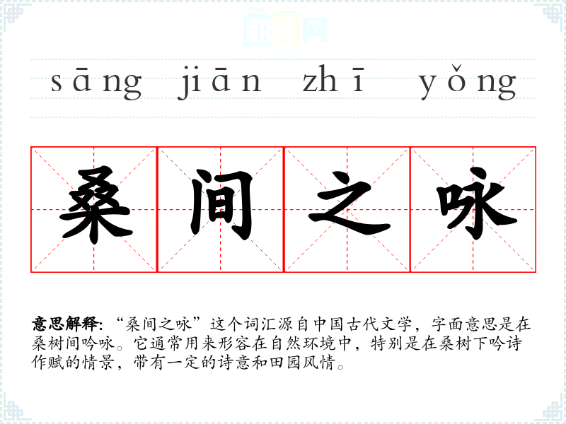“桑间之咏”这个词汇源自**古代文学,字面意思是在桑树间吟咏。它通常用来形容在自然环境中,特别是在桑树下吟诗作赋的情景,带有一定的诗意和田园风情。