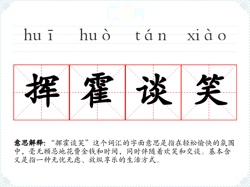“挥霍”一词源自古代汉语,原指散布、散开,后来引申为无节制地花费。“谈笑”则一直指交谈和笑声。这两个词组合在一起,形成了描述一种特定生活方式的词汇。