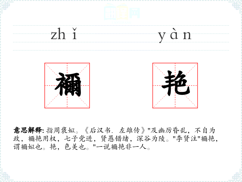 。"李贤注"襧艳,谓襧姒也。艳,色美也。"一说襧艳非一人。