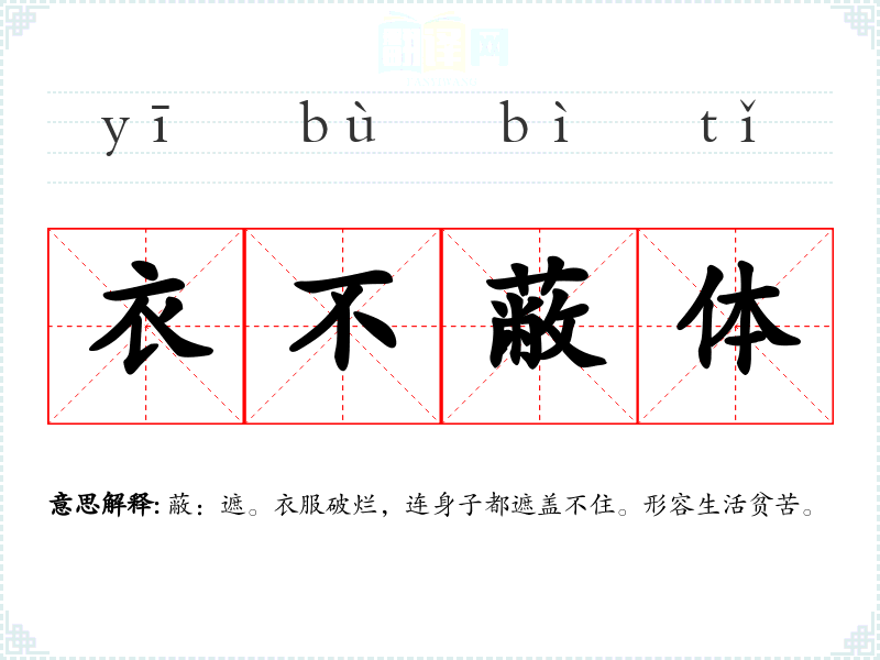 蔽:遮。衣服破烂,连身子都遮盖不住。形容生活贫苦。