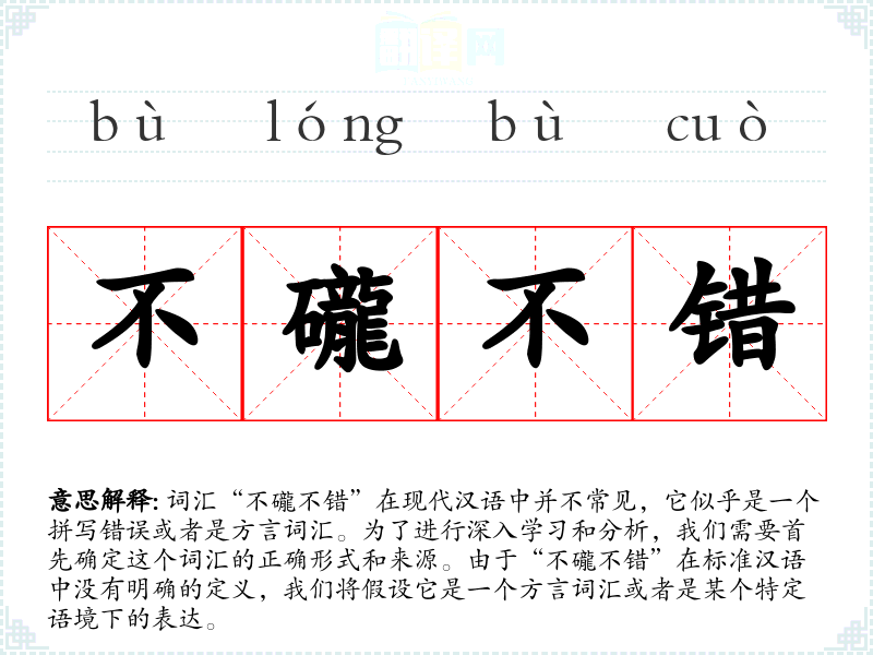 由于“不礲不错”不是一个标准汉语词汇,我们无法提供一个确切的基本定义。如果这是一个方言词汇,它可能在某个地区的方言中有特定的含义。