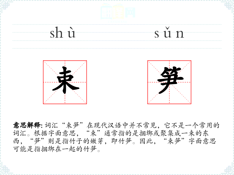 "束笋"的意思解释、束笋是什么意思由翻译网汉语词典查词提供。