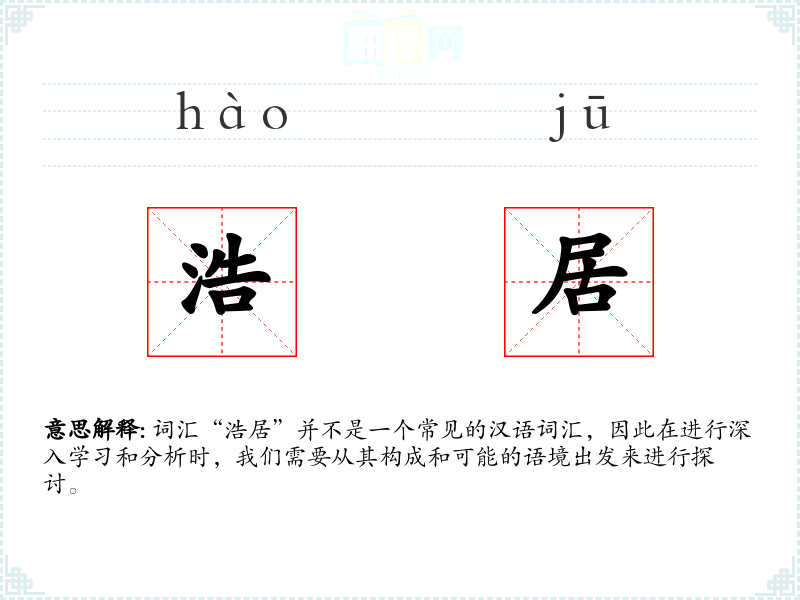 词汇“浩居”并不是一个常见的汉语词汇,因此在进行深入学*和分析时,我们需要从其构成和可能的语境出发来进行探讨。