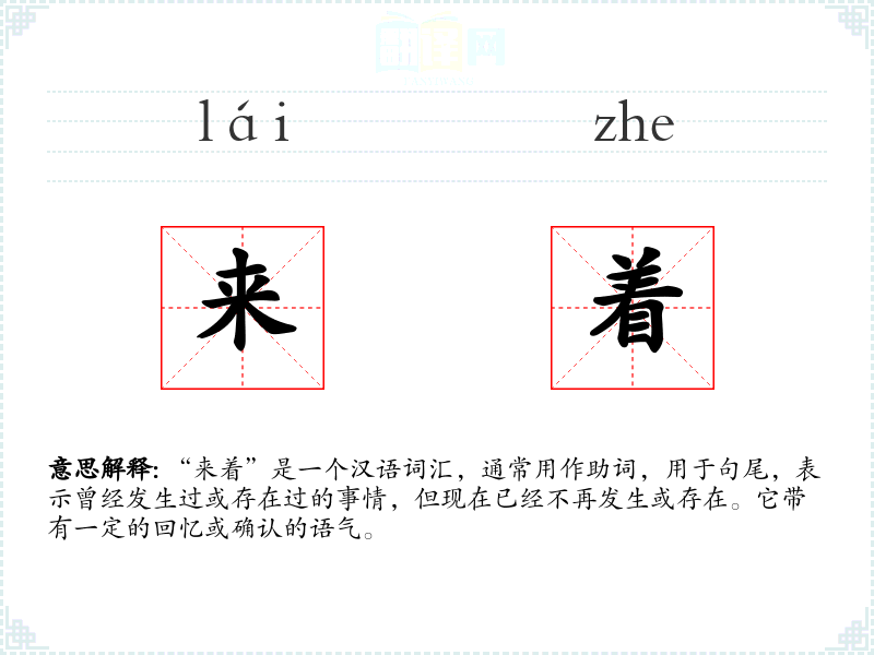 "来着"的意思解释、来着是什么意思由翻译网汉语词典查词提供。