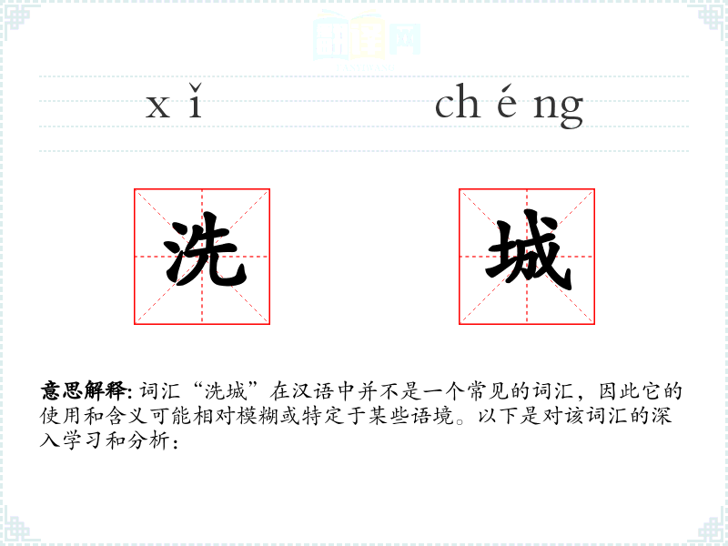 词汇“洗城”在汉语中并不是一个常见的词汇,因此它的使用和含义可能相对模糊或特定于某些语境。以下是对该词汇的深入学*和分析: