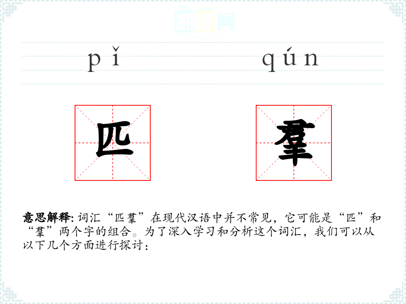 词汇“匹羣”在现代汉语中并不常见,它可能是“匹”和“羣”两个字的组合。为了深入学习和分析这个词汇,我们可以从以下几个方面进行探讨:
