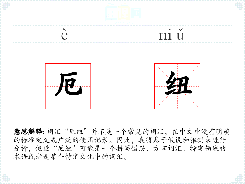 词汇“厄纽”并不是一个常见的词汇,在中文中没有明确的标准定义或广泛的使用记录。因此,我将基于假设和推测来进行分析,假设“厄纽”可能是一个拼写错误、方言词汇、特定领域的术语或者是某个特定文化中的词汇。