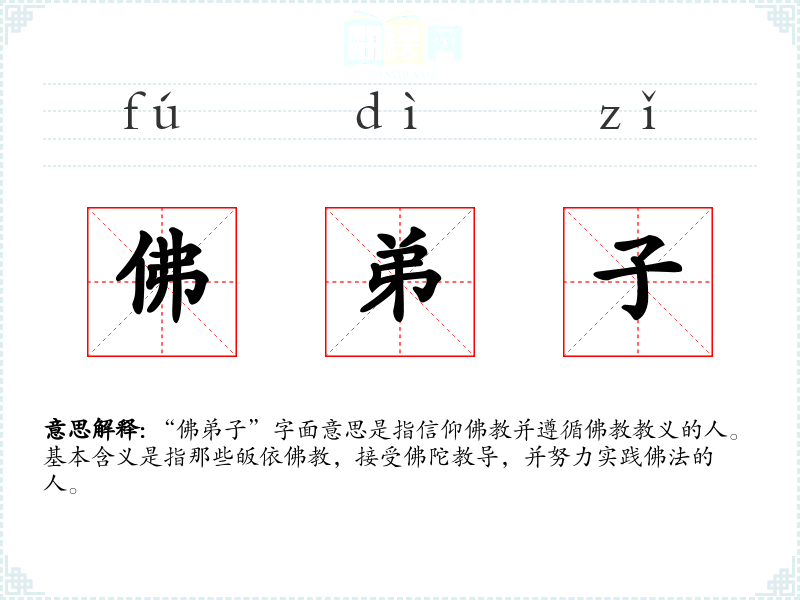 “佛弟子”字面意思是指信仰并遵循教义的人。基本含义是指那些皈依**,接受佛陀教导,并努力实践佛法的人。