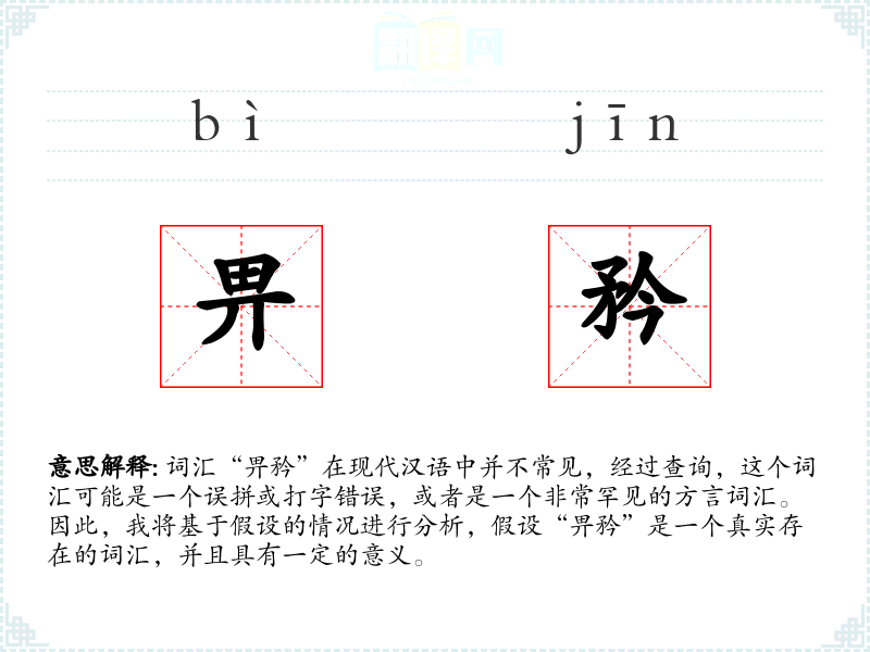 词汇“畀矜”在现代汉语中并不常见,经过查询,这个词汇可能是一个误拼或打字错误,或者是一个非常罕见的方言词汇。因此,我将基于假设的情况进行分析,假设“畀矜”是一个真实存在的词汇,并且具有一定的意义。