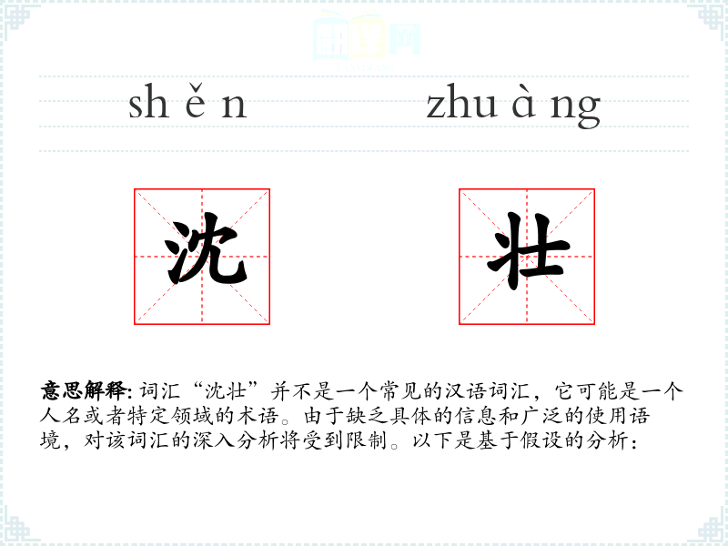 由于“沈壮”不是一个常见的词汇,以上的分析大多是基于假设和推测。如果能够提供更多的上下文信息,分析将更加准确和深入。