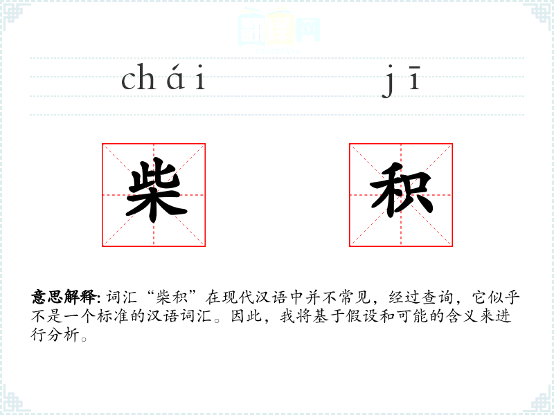词汇“柴积”在现代汉语中并不常见,经过查询,它似乎不是一个标准的汉语词汇。因此,我将基于假设和可能的含义来进行分析。