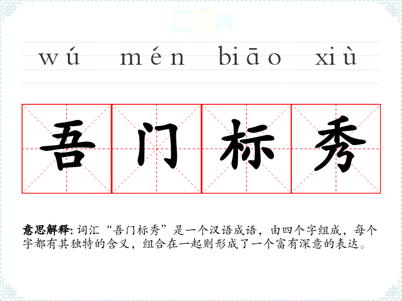 词汇“吾门标秀”是一个汉语成语,由四个字组成,每个字都有其独特的含义,组合在一起则形成了一个富有深意的表达。