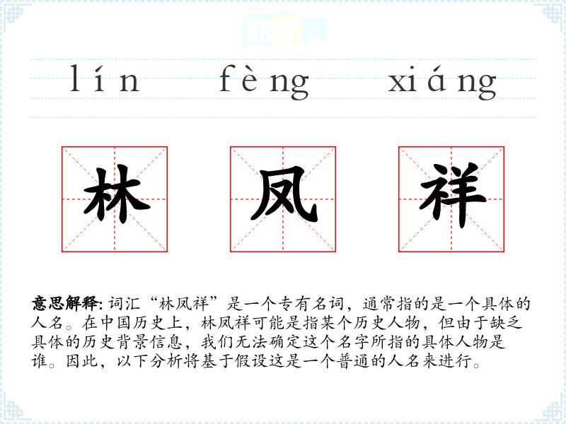 在其他文化中,可能没有直接对应“林凤祥”这个名字的词汇,但可以通过翻译了解其字面意义和文化内涵。