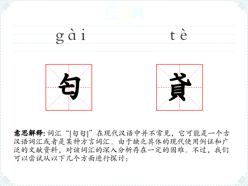 如果“[匄匄]”是一个古汉语词汇,可能需要查阅古汉语词典或相关文献来探讨其词源和历史演变。