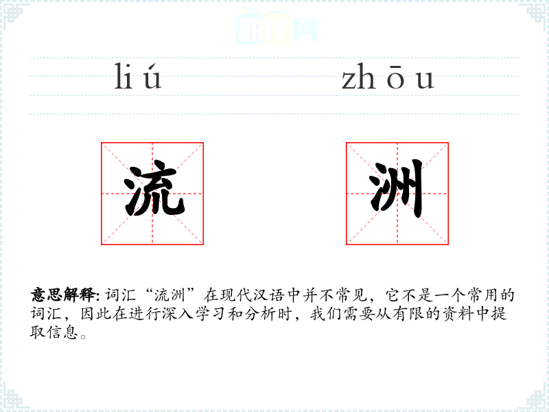 - 反义词:无(因为“流洲”不是一个常用词汇,反义词不明显)