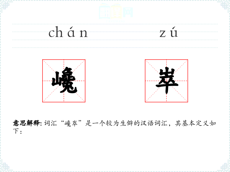 词汇“巉崒”是一个较为生僻的汉语词汇,其基本定义如下: