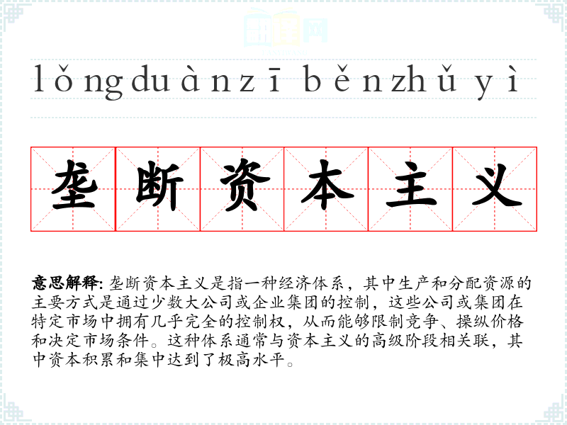 通过对“垄断资本主义”的深入学习,我们可以更好地理解现代经济体系的复杂性,以及它对社会、文化和个人生活的影响。这个词不仅是一个经济学术语,也是一个反映社会现实和价值观念的重要概念。