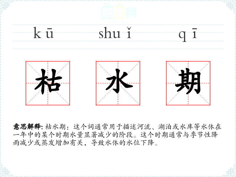 "枯水期"的意思解释、枯水期是什么意思由翻译网汉语词典查词提供。