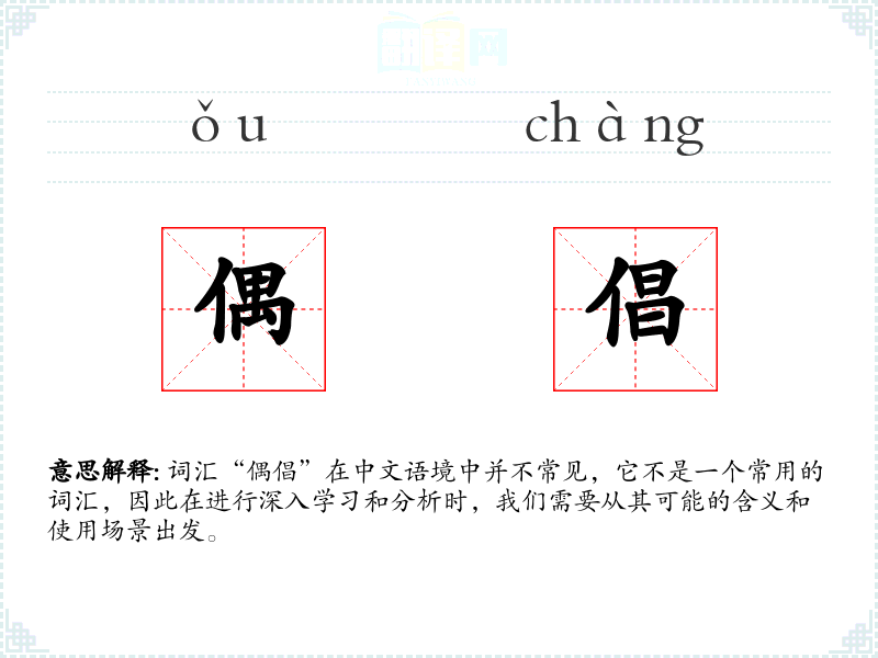 词汇“偶倡”在中文语境中并不常见,它不是一个常用的词汇,因此在进行深入学习和分析时,我们需要从其可能的含义和使用场景出发。