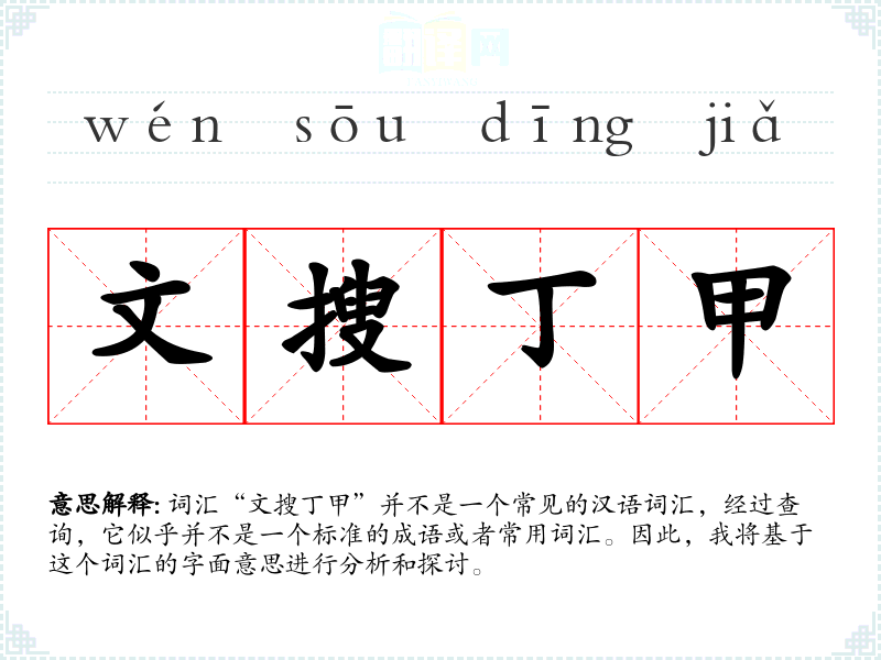 “文搜丁甲”字面意思可以分解为: