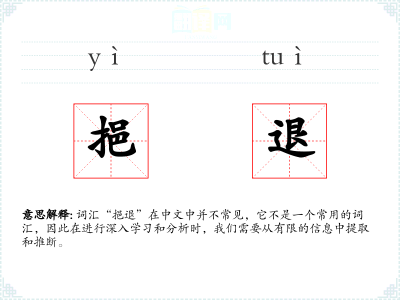 词汇“挹退”在中文中并不常见,它不是一个常用的词汇,因此在进行深入学习和分析时,我们需要从有限的信息中提取和推断。