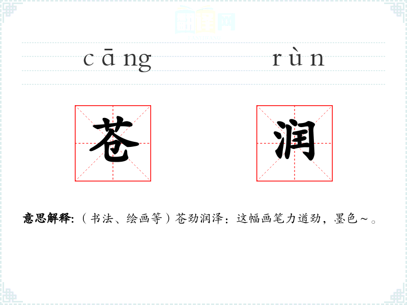 (书法、绘画等)苍劲润泽:这幅画笔力遒劲,墨色~。