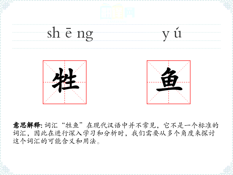 词汇“牲鱼”在现代汉语中并不常见,它不是一个标准的词汇,因此在进行深入学*和分析时,我们需要从多个角度来探讨这个词汇的可能含义和用法。
