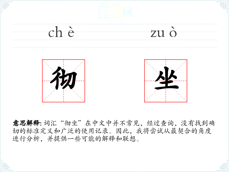 由于“彻坐”不是一个标准词汇,我们可以尝试拆分理解: