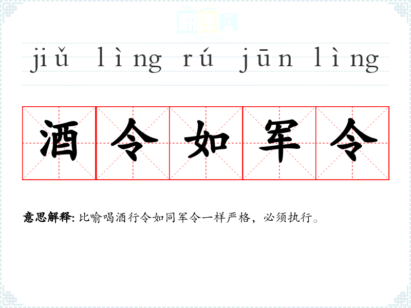 "酒令如军令"的意思解释、酒令如军令是什么意思由翻译网汉语词典查词提供。