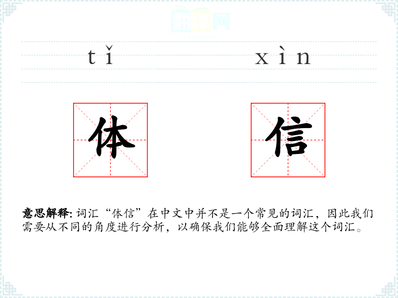 词汇“体信”在中文中并不是一个常见的词汇,因此我们需要从不同的角度进行分析,以确保我们能够全面理解这个词汇。