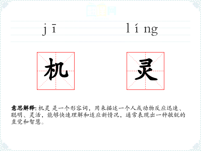 机灵 是一个形容词,用来描述一个人或动物反应迅速、聪明、灵活,能够快速理解和适应新情况,通常表现出一种敏锐的直觉和智慧。